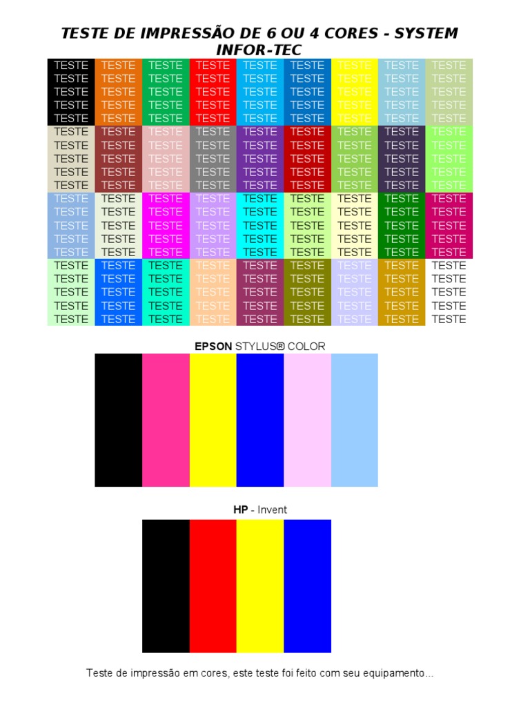 TESTE DE IMPRESSÃO DE 6 OU 4 CORES